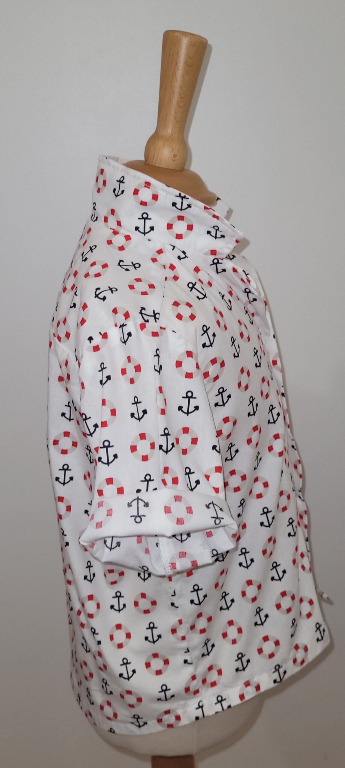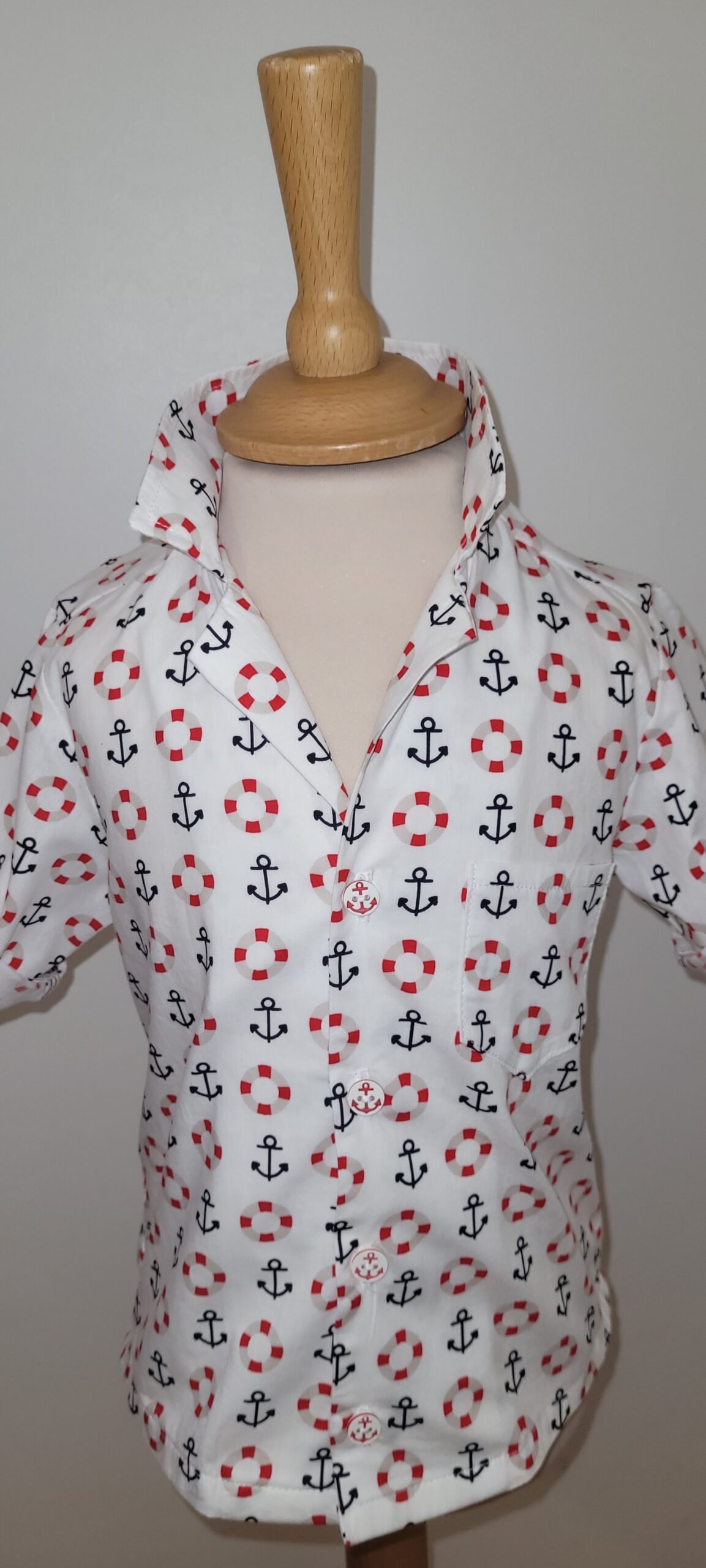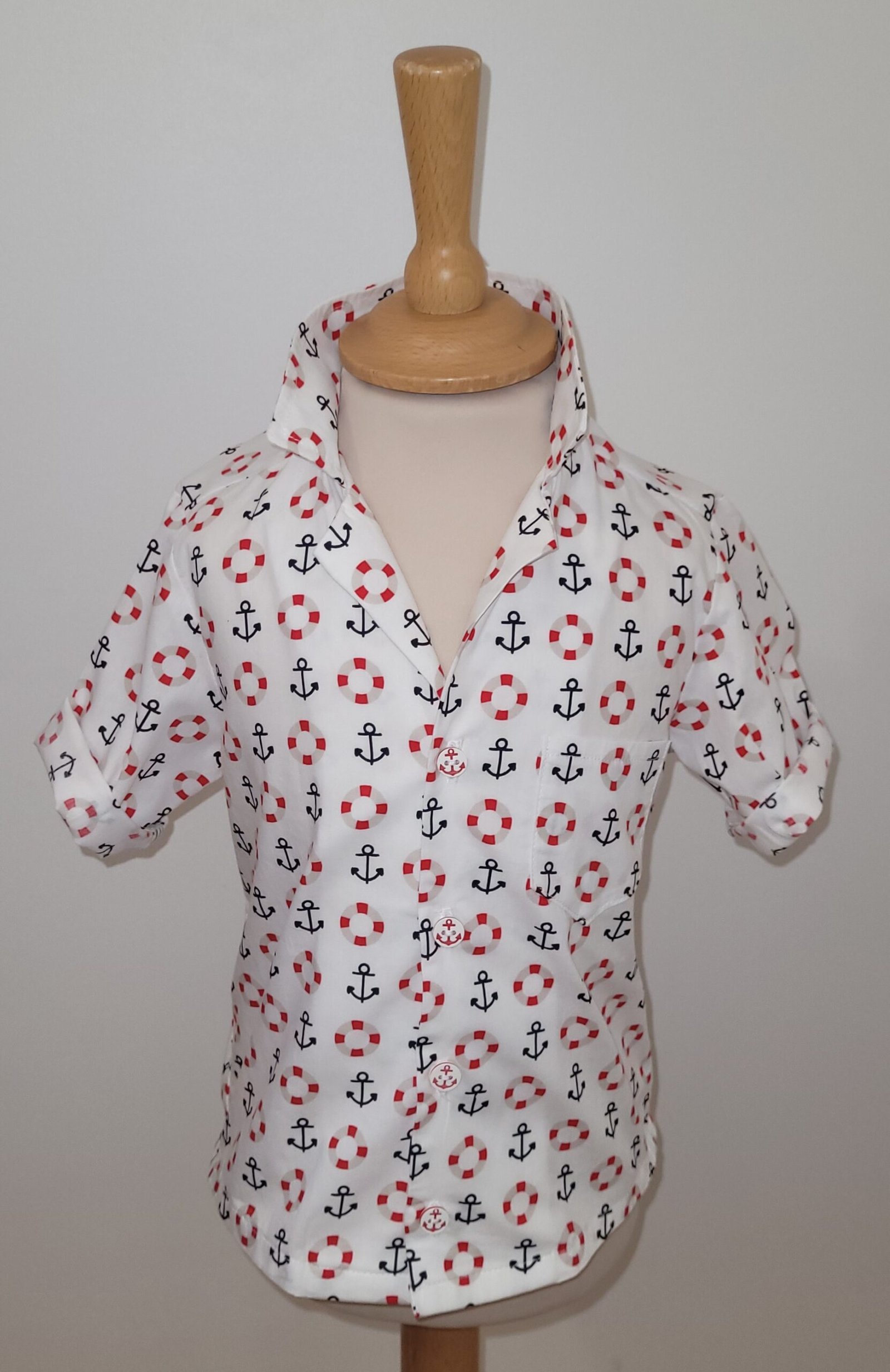 L’imprimé de bouées et d’ancres sur fond blanc évoque l’esprit marin et l’aventure en mer. Les couleurs vives et les motifs amusants ajoutent une touche de gaieté à cette chemise enfant.